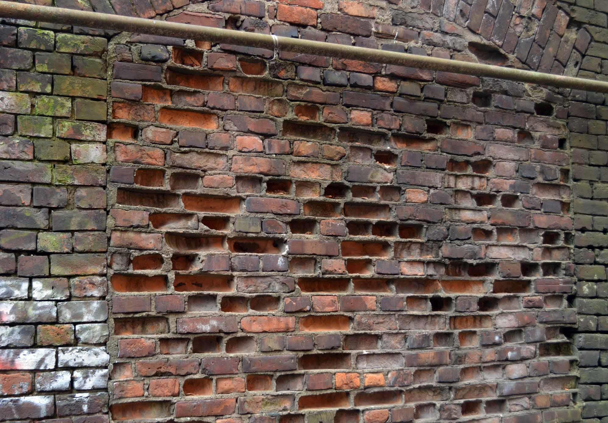 Старая и новая кладки, часть кирпичей выкрошились от времени (тем более, что "новая" - понятие относительное - советского периода):