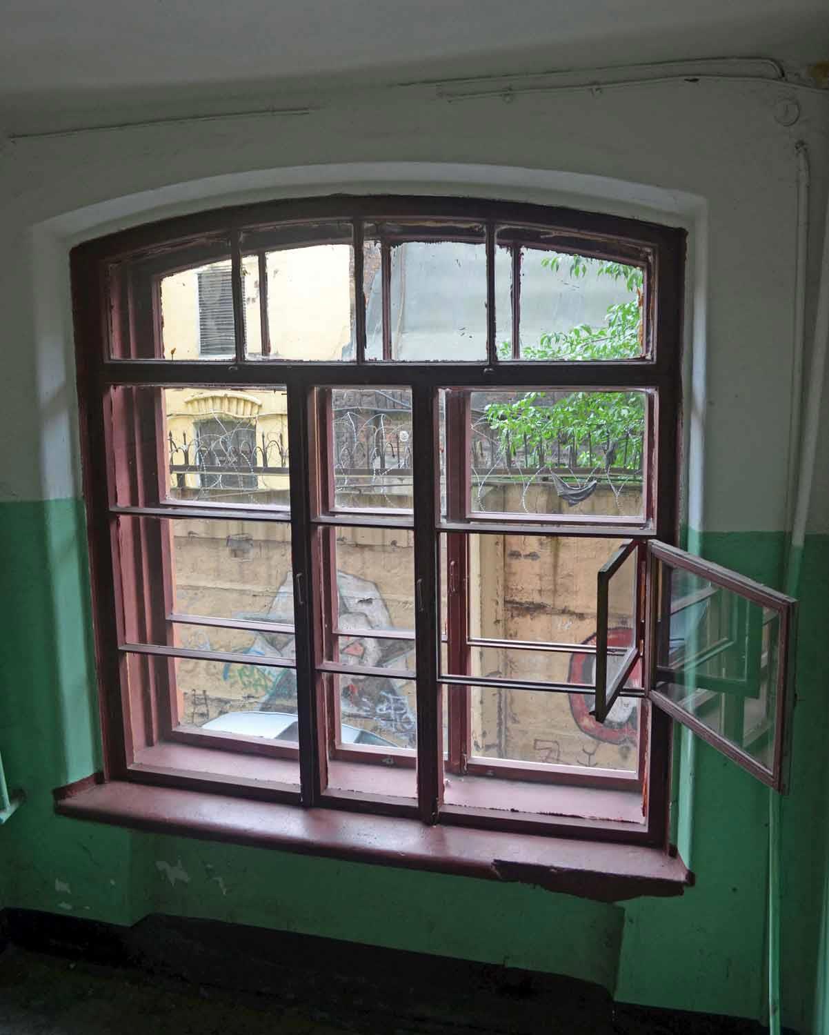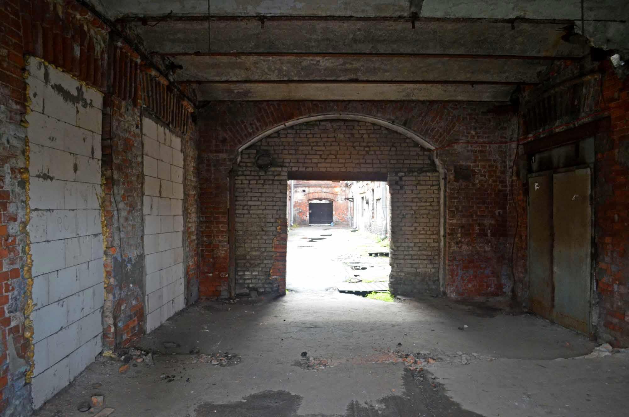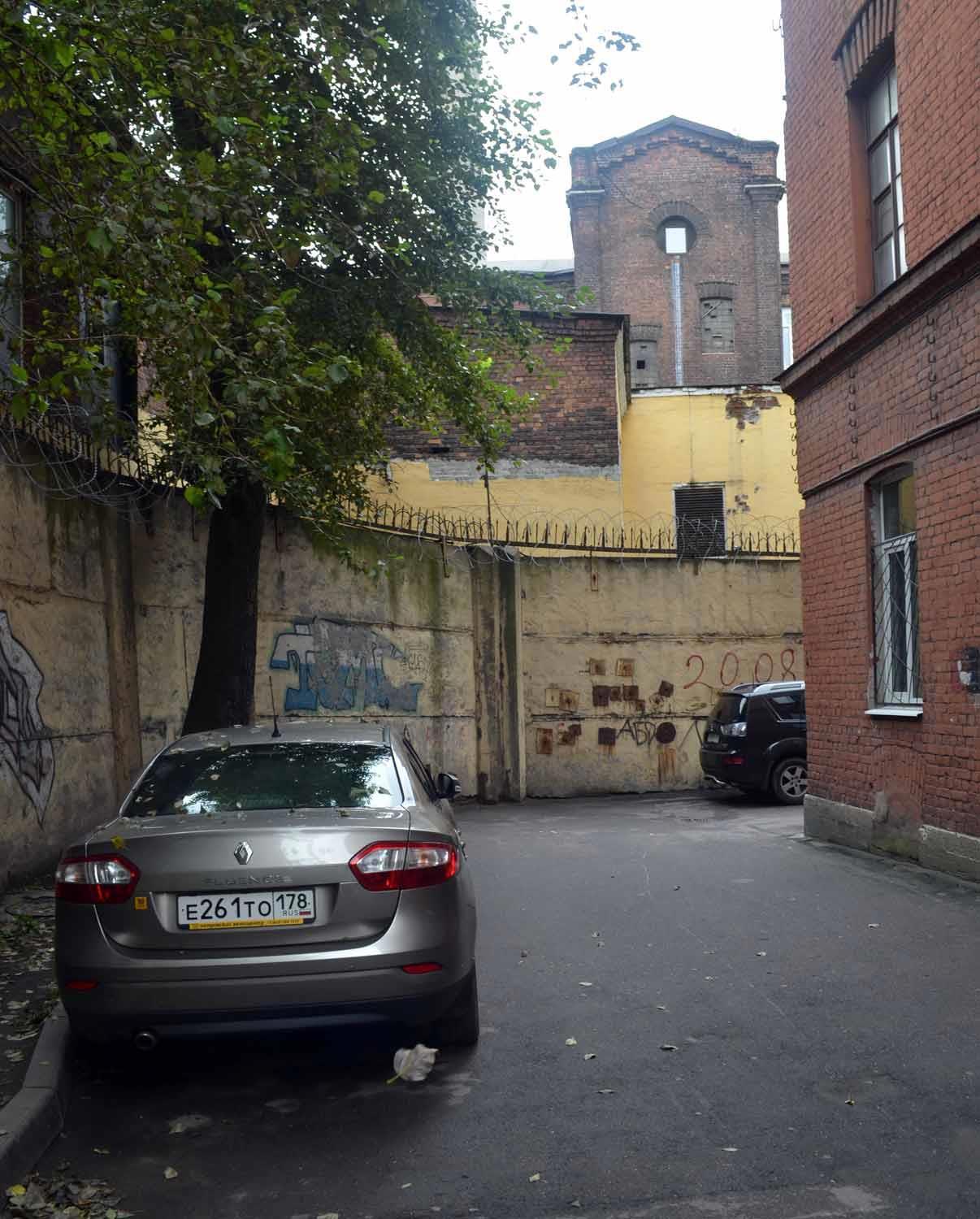 Дальше мы пошли по Обводному и в одном месте нашли ещё подворотню, но уже закрытую. Сфотографировали через щёлочку: