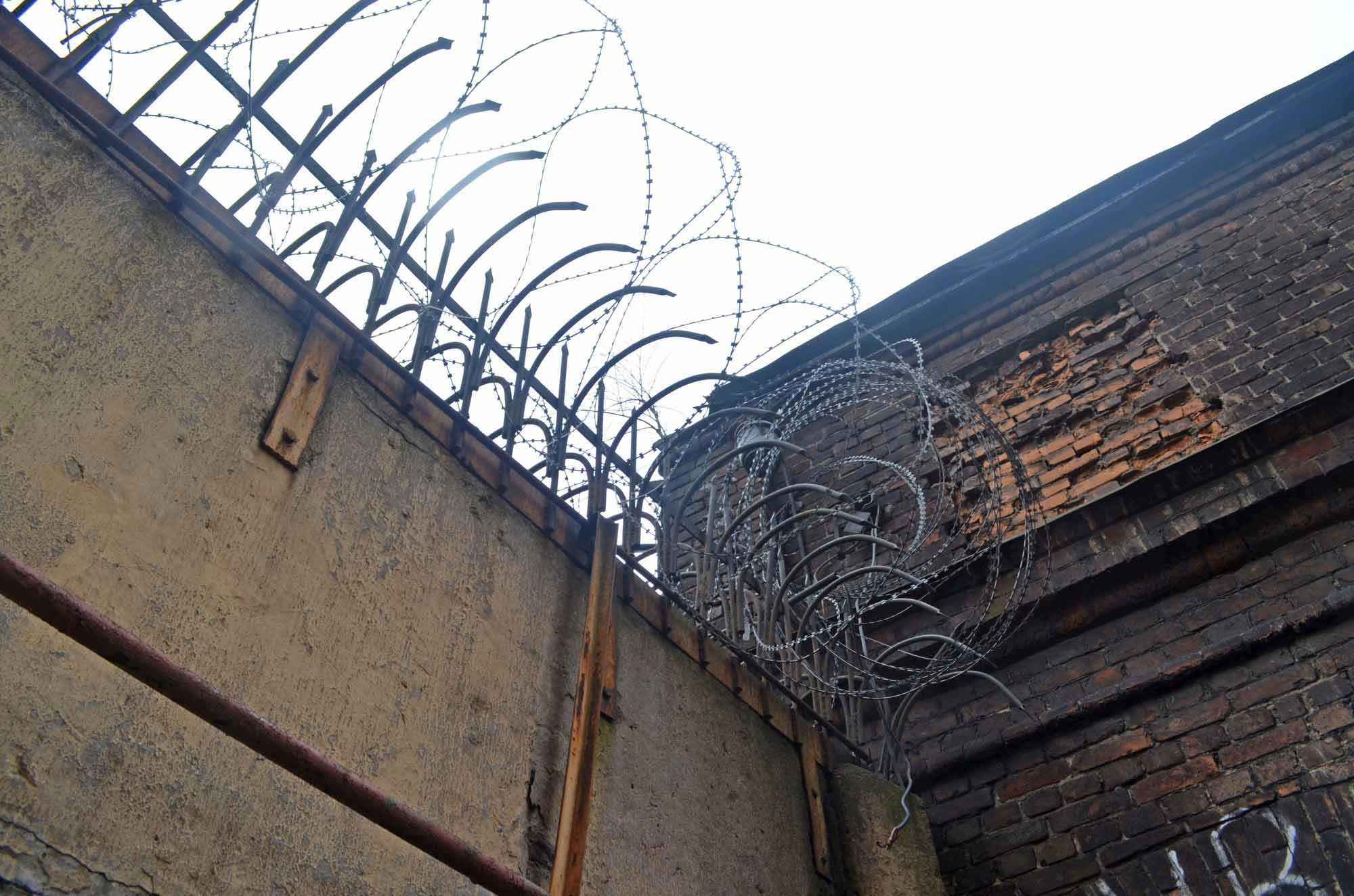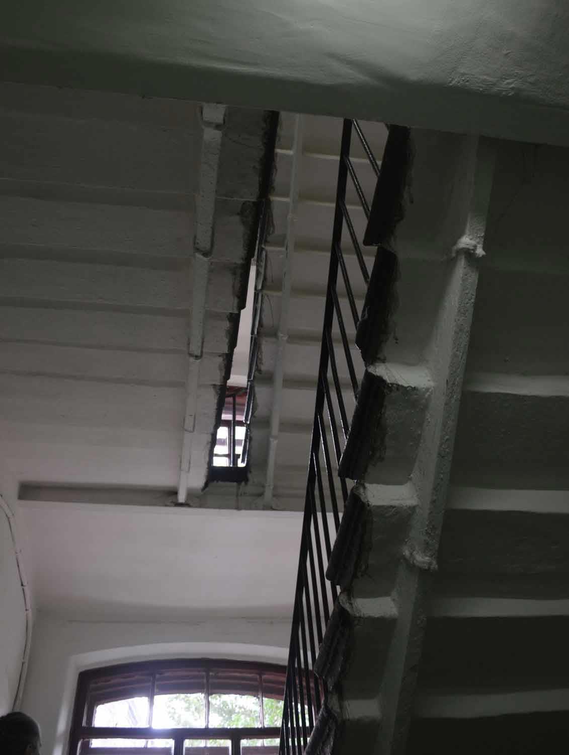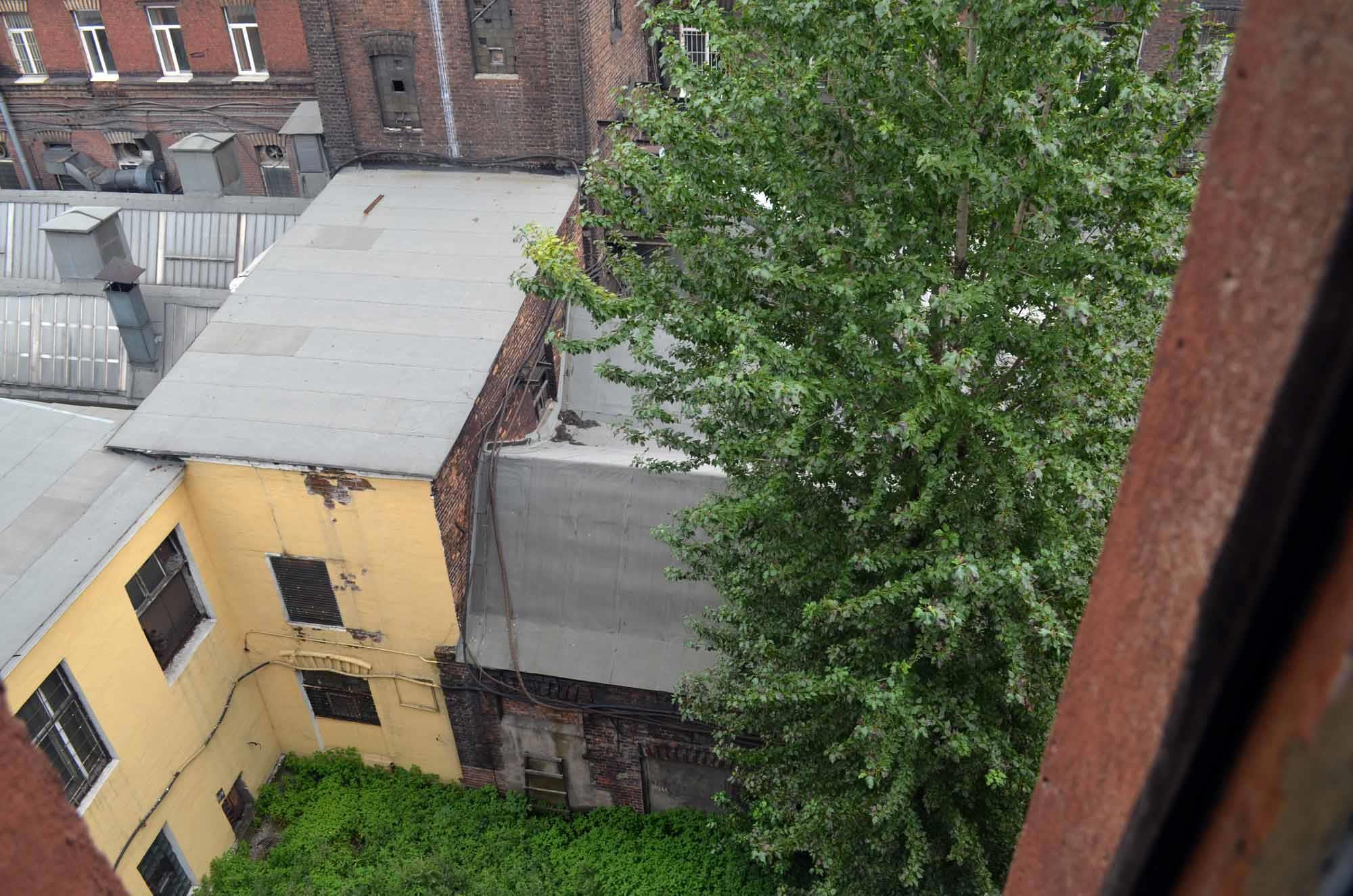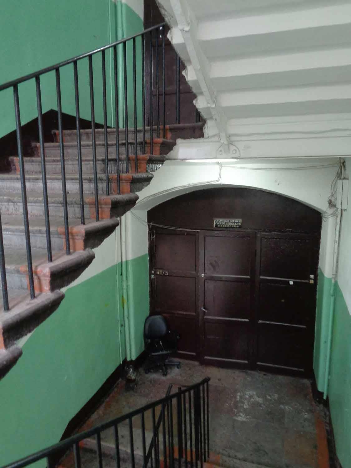 Вот такой узкий проход продолжен к общажной двери. Слева - закрытая территория: