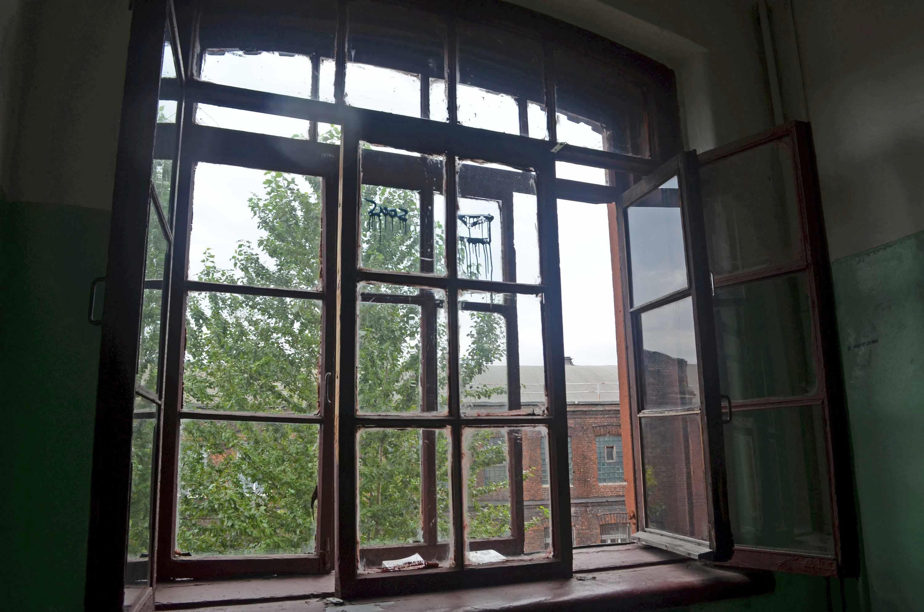 Между рамами окна валяются книжки. Кто-то тут курит и читает на досуге: