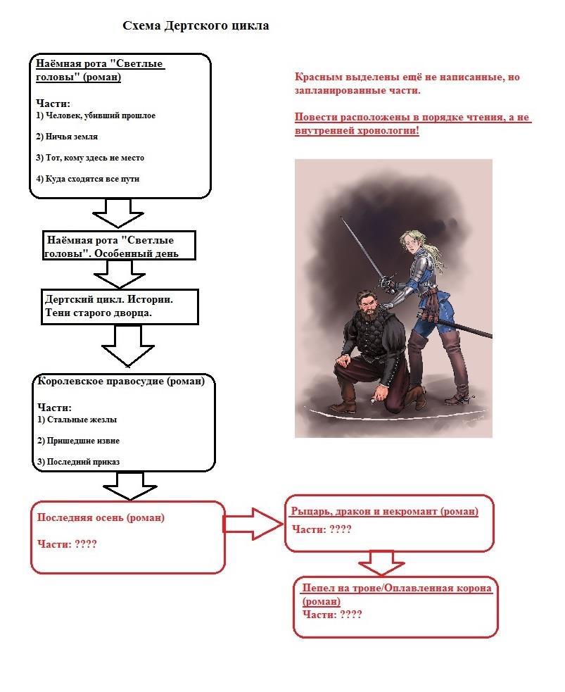 Автор: Руслан БирюшевЧтобы люди не путались в моём фэнтезийном цикле, решил сделать наглядную табличку с порядком чтения романов и повестей - добавив прямо в неё анонсы следующих романов. Я уже расписывал порядок на словах, но получилось тоже запутанно, так вот будет нагляднее.