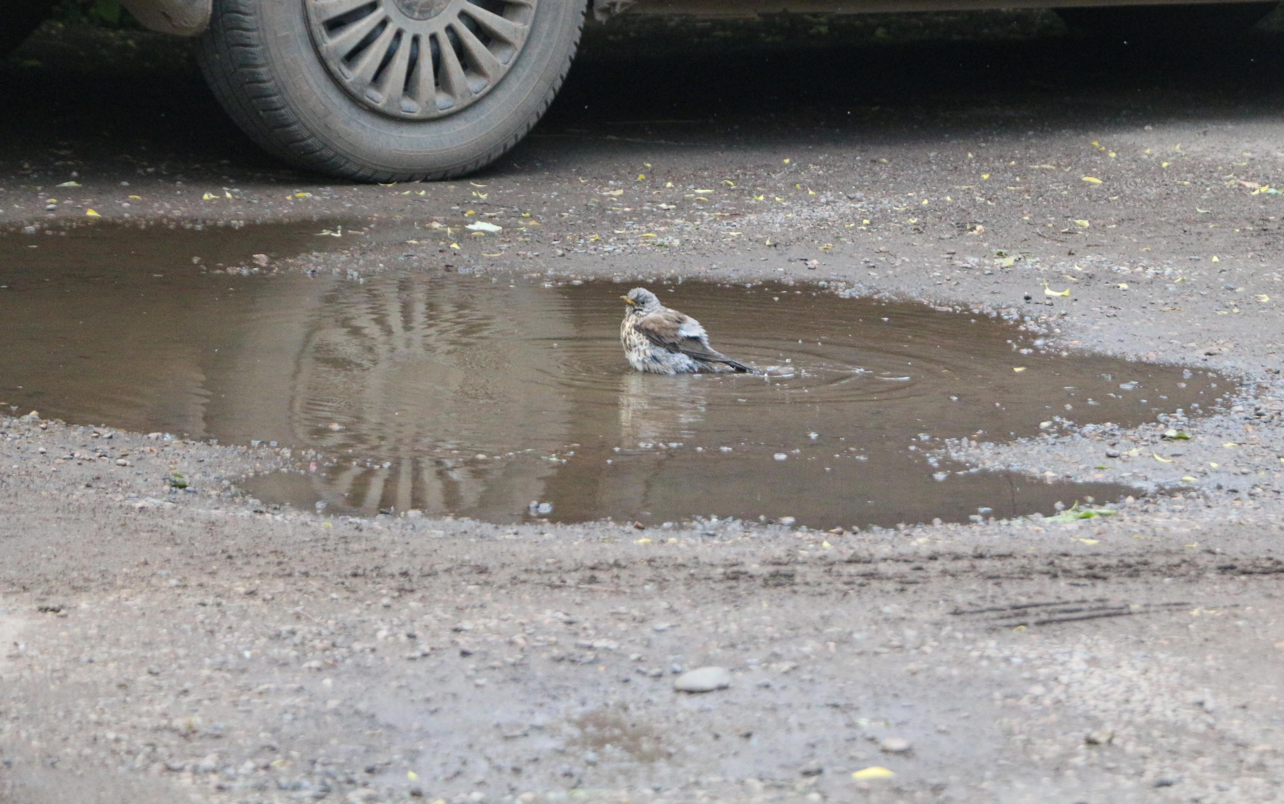 И трепыхается, купаясь в луже, поднимая невероятное количество брызг своим маленьким тельцем. Я подкрадываюсь ближе...