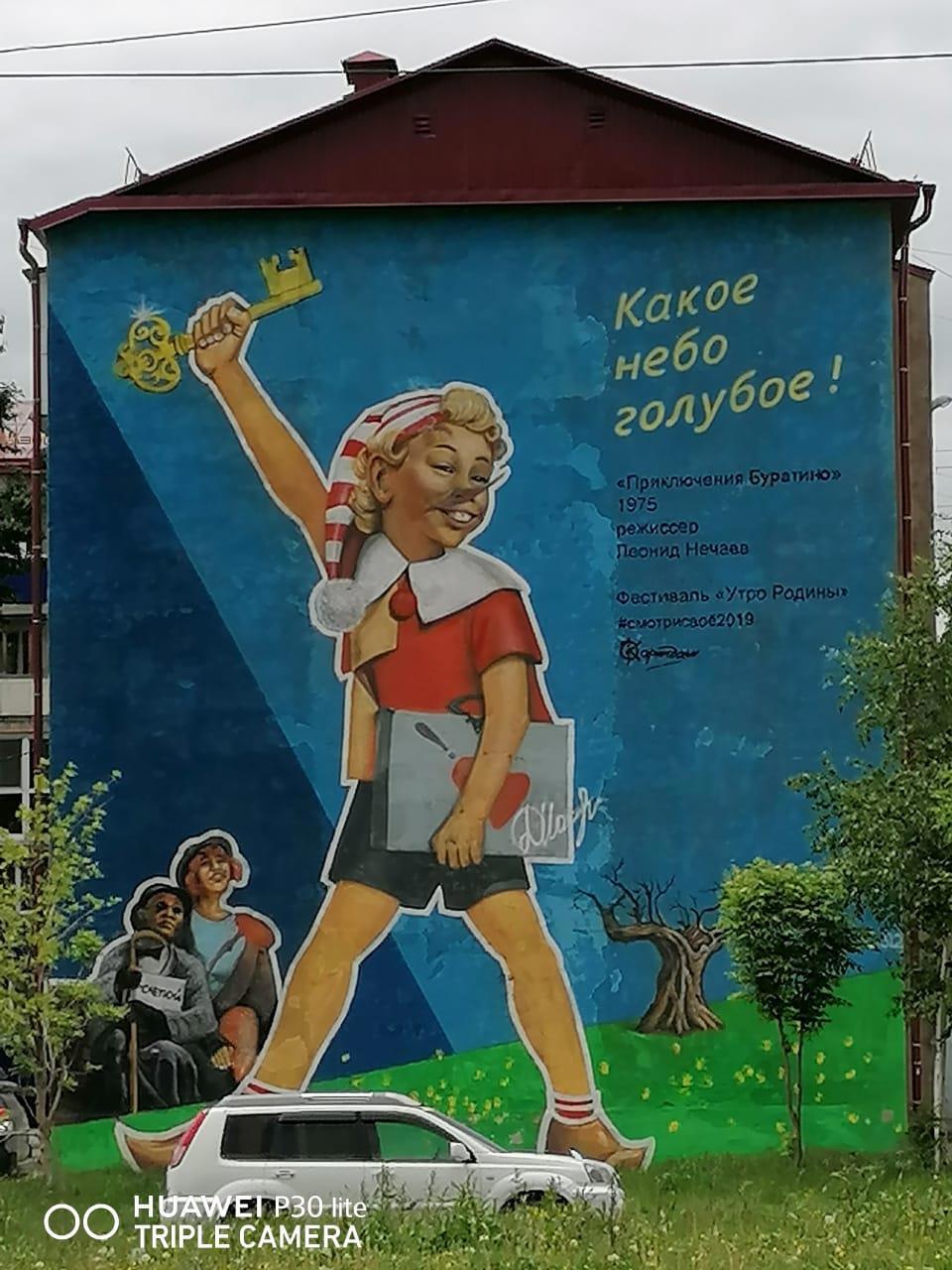 А вот следующие граффити родились во время проведения фестиваля художественных фильмов "Утро Родины". Вы себе даже не представляете насколько они украсили город!