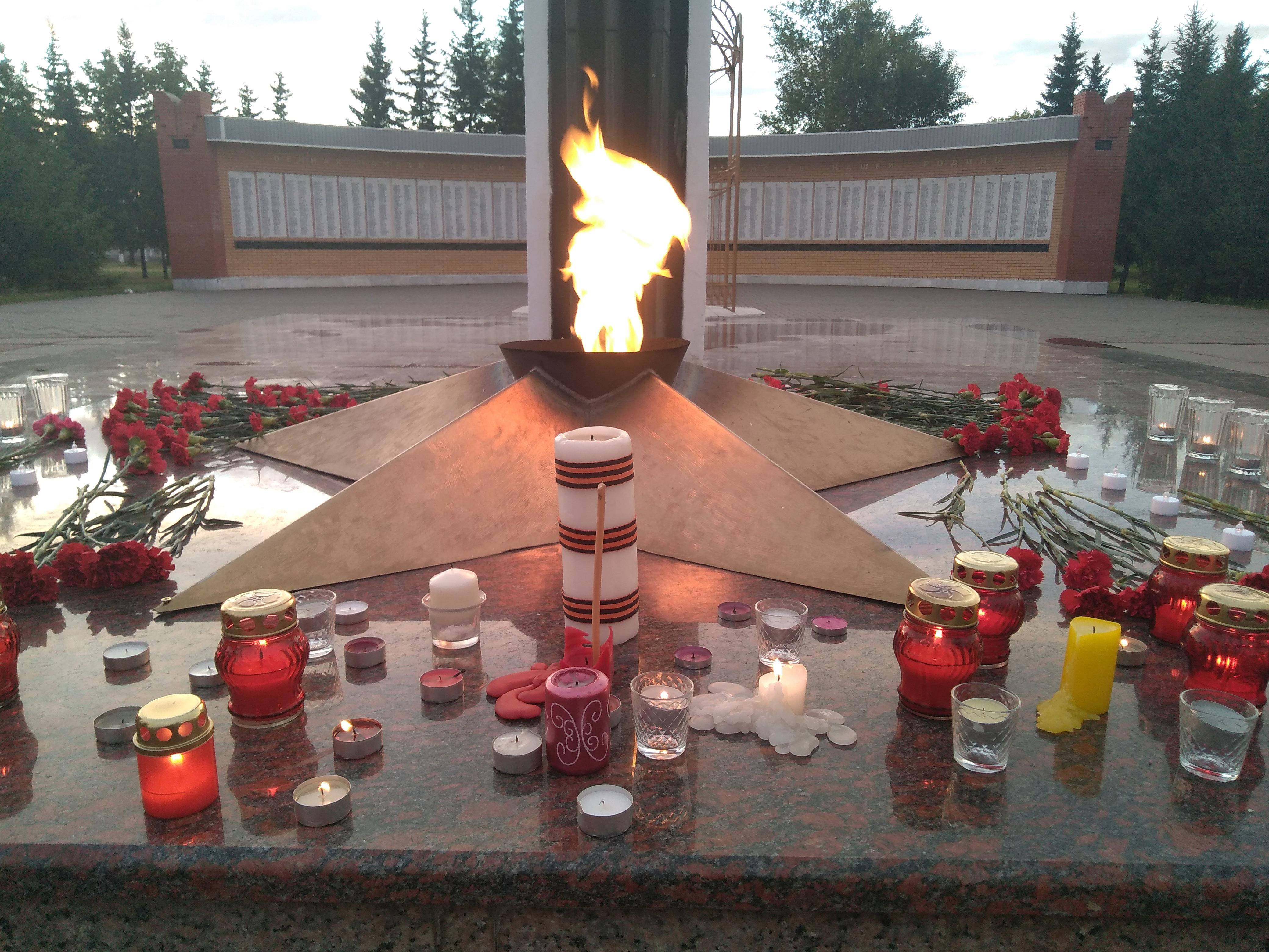 Не звучало пафосных речей от глав, не играло столь же пафосно-торжественных песен. Нет, просто люди приходили сами, по одному или небольшими группками, зажигали свечку, стояли немного и уходили. Кто-то ложил гвоздики, местные бомжи срывали с окрестных клумб цветы и ложили их. Были люди всех возрастов, малыши и старики. Я общался с некоторыми - они приходили абсолютно осознанно. В какой-то момент пришли школьники из какого-то реконструкторского клуба, одетые в военную форму тех лет и встали на караул у вечного огня.