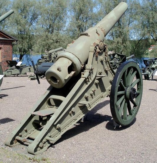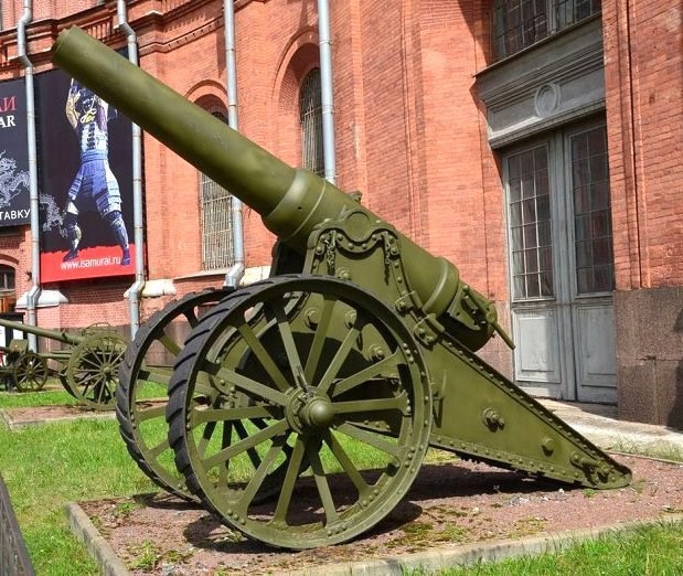 В те дни 1941 года советские войска полуразгромленными дрались насмерть в окружениях, с боями пробивались на восток, отвлекали, как могли, стальную мощь объединённой Европы злобной силой фашистской Германии от её главной цели. Но танковые клинья гитлеровцев с упрямством железного идиота пёрли на Москву. На линии Солнечногорск - Красная Поляна держали оборону войска Рокосовского. Однако для того, чтобы остановить танки одного таланта полководца было мало и он обратился к Жукову с просьбой об усилении его подразделений противотанковой артиллерией. Положение было очень тяжёлым. А у Жукова с этим самым было, что называется "шаром покати". Он обратился к Сталину. Хотели взять учебные орудия у артиллерийской академии им. Дзержинского, но те уже успели эвакуироваться. Однако "на посту" оставались ещё около сотни старых военспецов, которых в армию уже не брали по возрасту. Не известно, кому из них пришла в голову идея использовать практически "музейные образцы" пушек, но в течении суток было подготовлено несколько противотанковых батарей, оснащённых орудиями, которые я показал на фотографиях. Пушки были старенькими, с изношенными стволами, но по 5-7 выстрелов вполне могли ещё выдержать. По ходу образовалась ещё одна проблема. Дело было в том, что 42-линеек снаряды нашлись, а вот для 6-дюймовок таковых не оказалось. Решение нашли быстро - решили использовать трофейные осколочно-фугасные снаряды фирмы Викерс, которых оказалось в избытке и сохранились они отлично и которые походили на "родные" боеприпасы, как Николай II на Георга V. Нашлись также капсюли и пороховые заряды к ним. Хорошие такие снарядики... Вес каждого - 45,4 кг.