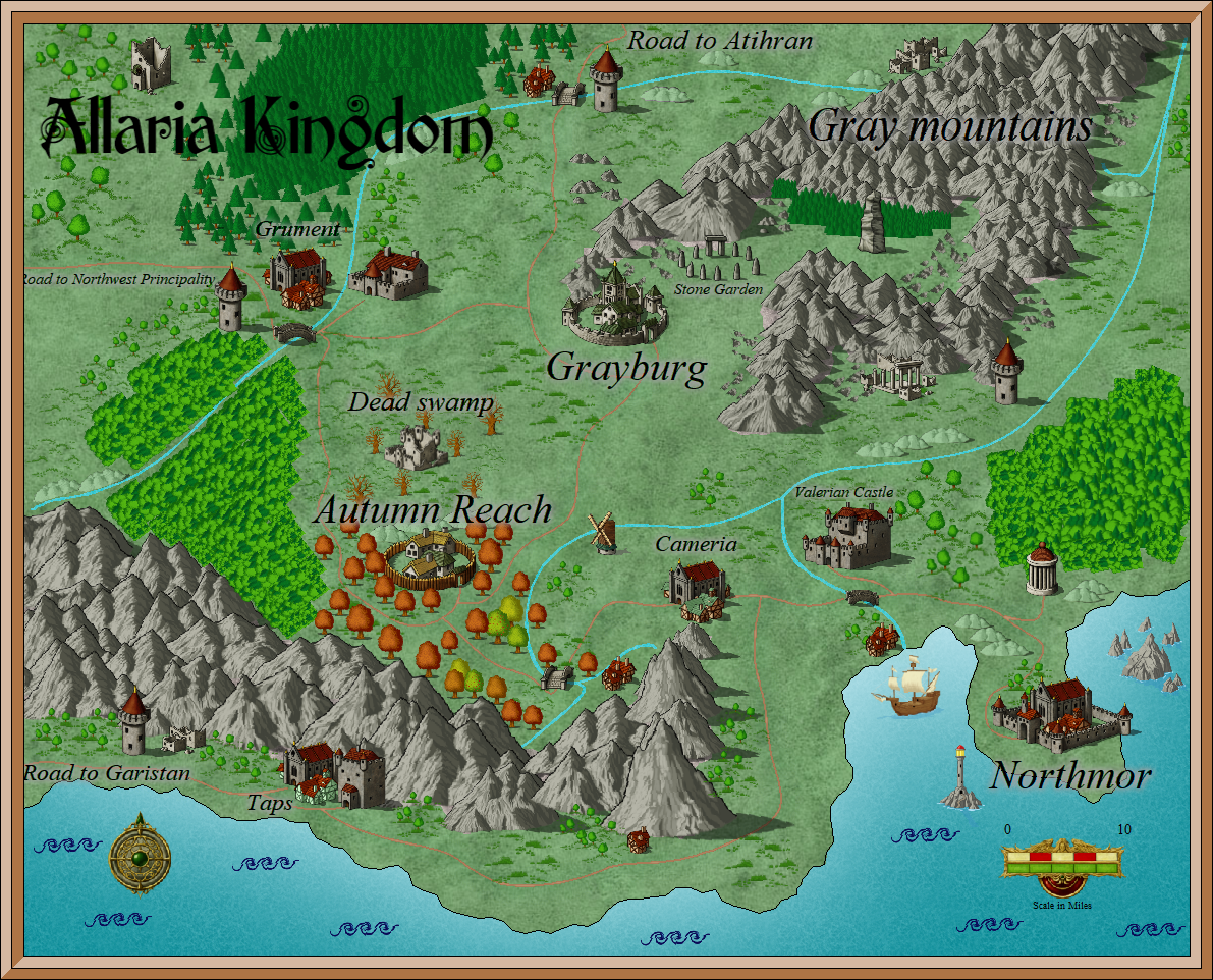 Героям многих романов, особенно приключенческих, приходится довольно много путешествовать и зачастую на большие расстояния. В связи с этим, у читателя могут возникать сложности с ориентированием на местности. Полагаю, что моя первая книга - Тайрос, не станет исключением. Чтобы облегчить ваше представление о месте действия, я набросал "на коленке" небольшую карту королевства Аллария. Я постарался учесть в ней все, что вероятнее всего появится в книге, но мелкие правки возможно будут. Карта уже добавлена в доп. материалы книги.