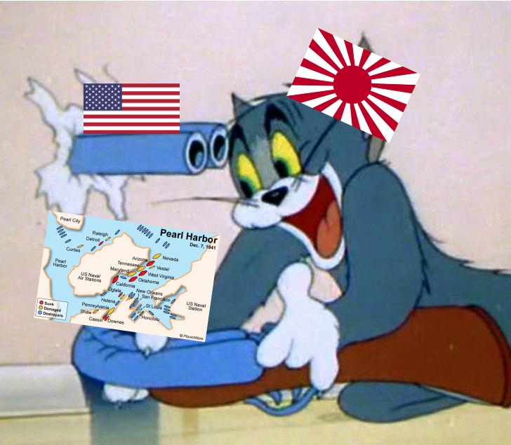 японцы решат организовать Штатам (с интересом дельца наблюдающими за маханием конечностями в Старом Свете) аналог Цусимы и устроят тартарарам в Жемчужной Гавани.