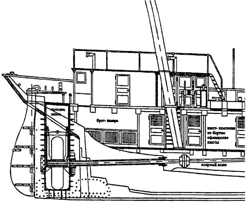 На русских клиперах вместо этого был устроен винтовой колодец, в который винт, когда в нём не было надобности, поднимали целиком. Благодаря этому клипер шёл не хуже чисто парусного и при этом не тратил уголь.