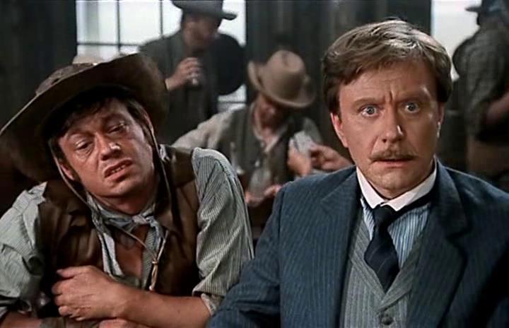 В силу большой занятости, его приходилось снимать отдельно. Крупные планы Табакова вставляли в сцены в салуне и создавали полный эффект присутствия, а партнёров талантливый актёр «чувствовал на расстоянии». К съёмкам привлекли и Табакова-младшего — Антон играл мальчишку-билетёра.