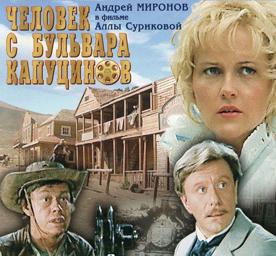 23 июня 1987 года после шести лет на полке «Мосфильма» в советский прокат вышла картина Аллы Суриковой «Человек с бульвара Капуцинов» — комедийный вестерн с Андреем Мироновым, Александрой Яковлевой, Николаем Караченцовым и Олегом Табаковым в главных ролях. Автором сценария фильма, жанр которого его авторы определили как «ироническая фантазия в стиле вестерна», стал Эдуард Акопов.