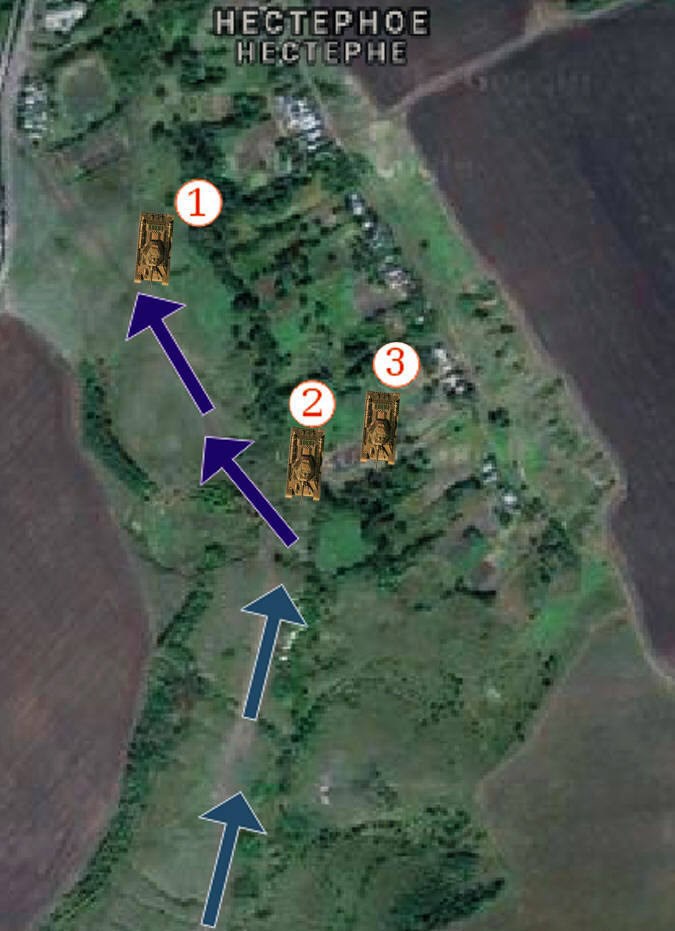 Вот здесь и началась настоящая легенда! За немцев была новейшая техника и запредельное превосходство в силах. На стороне экипажа старшего лейтенанта Шолохова было острое желание отомстить за погибших товарищей и мастерство. На карте-схеме 1 - танк Шолохова, 2 и 3 - танки Сергеева и Калинина.