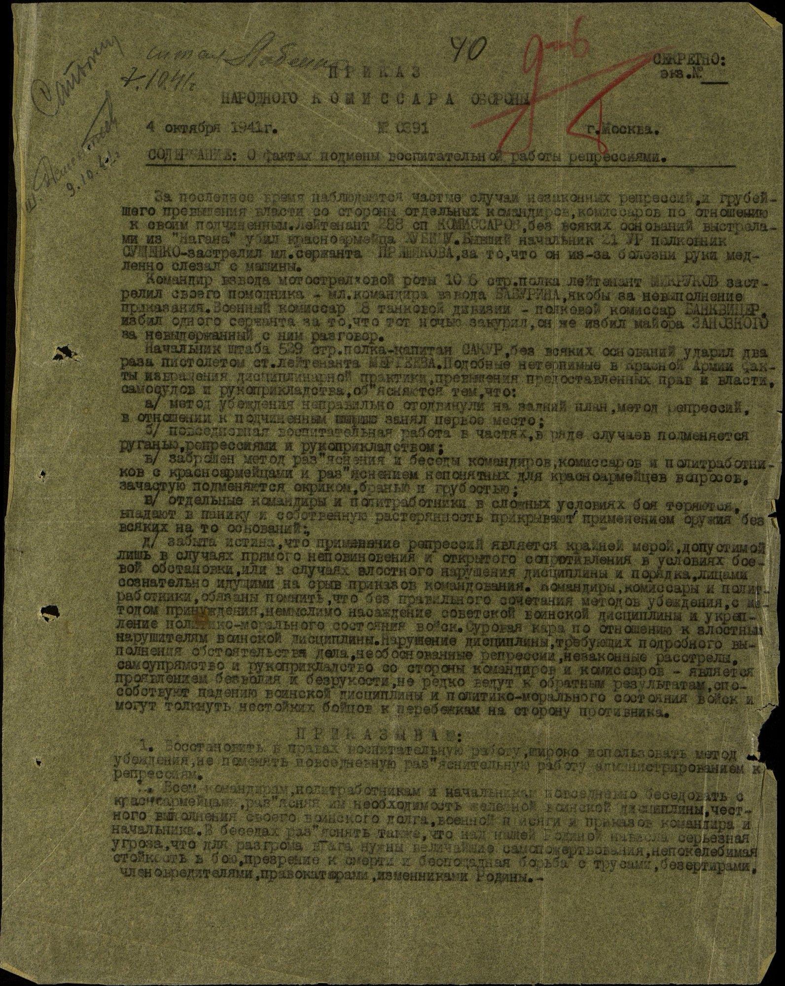 приказ НКО № 391 от 4 октября 1941 года.