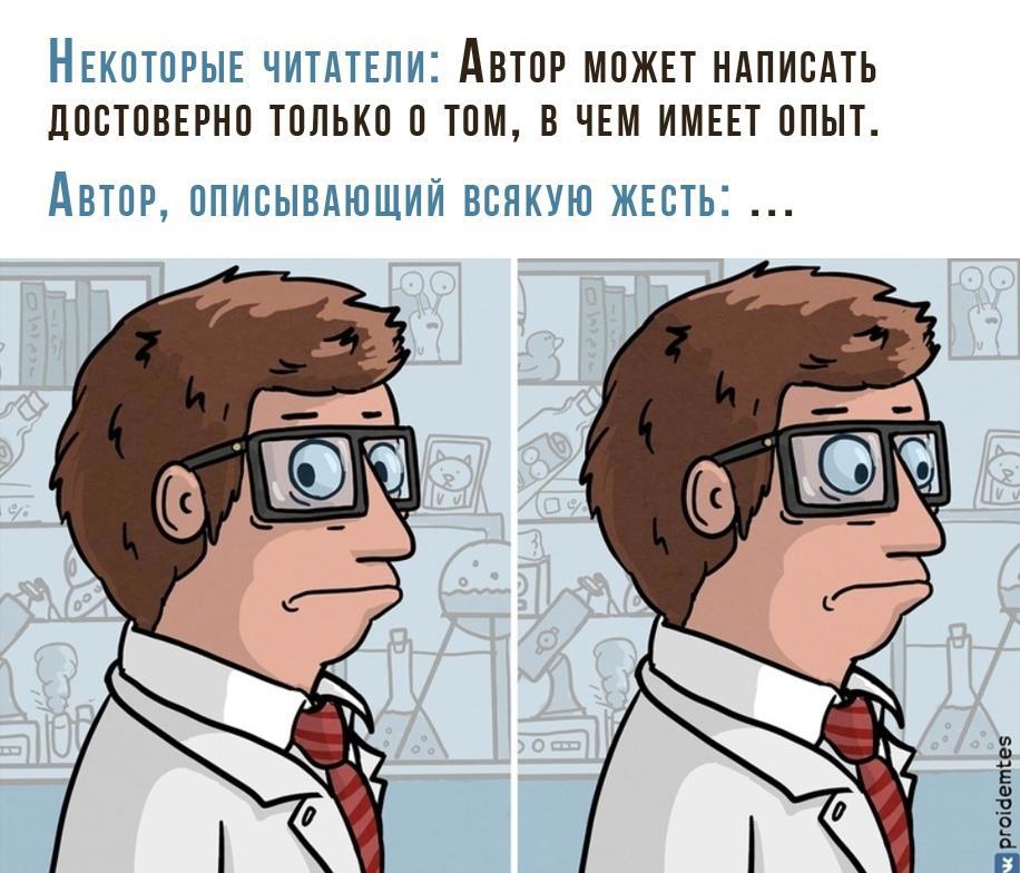 1. Стиль речи — как льётся рассказ. Есть ли у автора свои уникальные словечки, обороты, свой авторский способ подачи, каким способом писатель собирает слова в предложения, насколько связный получается текст. Насколько привлекательна авторская речь. Могу ли я читать слова, собранные в таком порядке. Причём, гладкий простенький текст — это скорее нейтральный фактор, нежели достоинство. В то время как витиевато-вычурные словеса я могу пережить только в парочке сцен, а потом воспринимаю как модернистское пижонство и уход автора в ненужные мне красивости на укор смыслу.