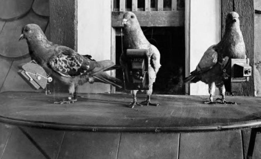 Считается, в период Первой мировой войны голубей, с прикрепленными к их телам фотоаппаратами, использовали для воздушной разведки. Как по мне, в связи с бурным развитием авиации, примерно в то же время, перспективность весьма сомнительна.