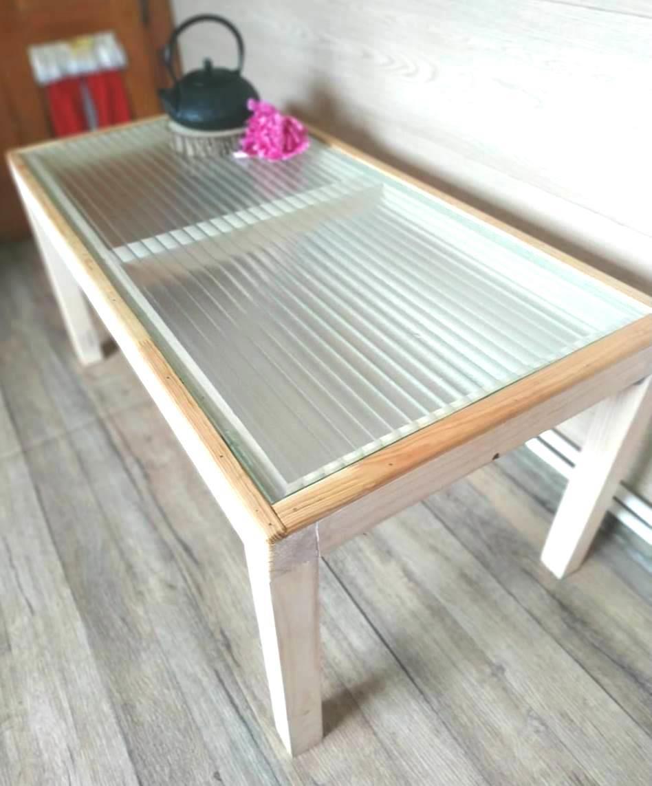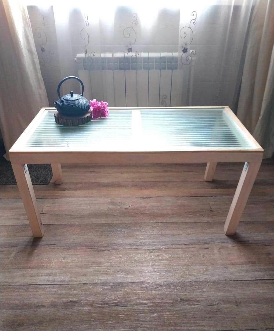 Работа со стеклом соответствует гармонизации Луны (Чандра), поэтому столик выполнен с помощью пропитки древесины в белом цвете.