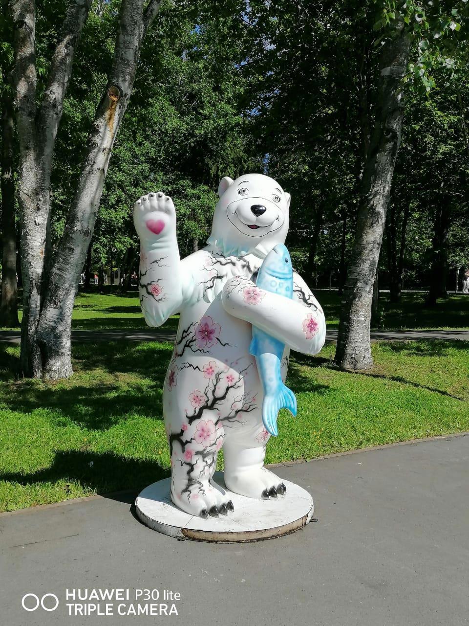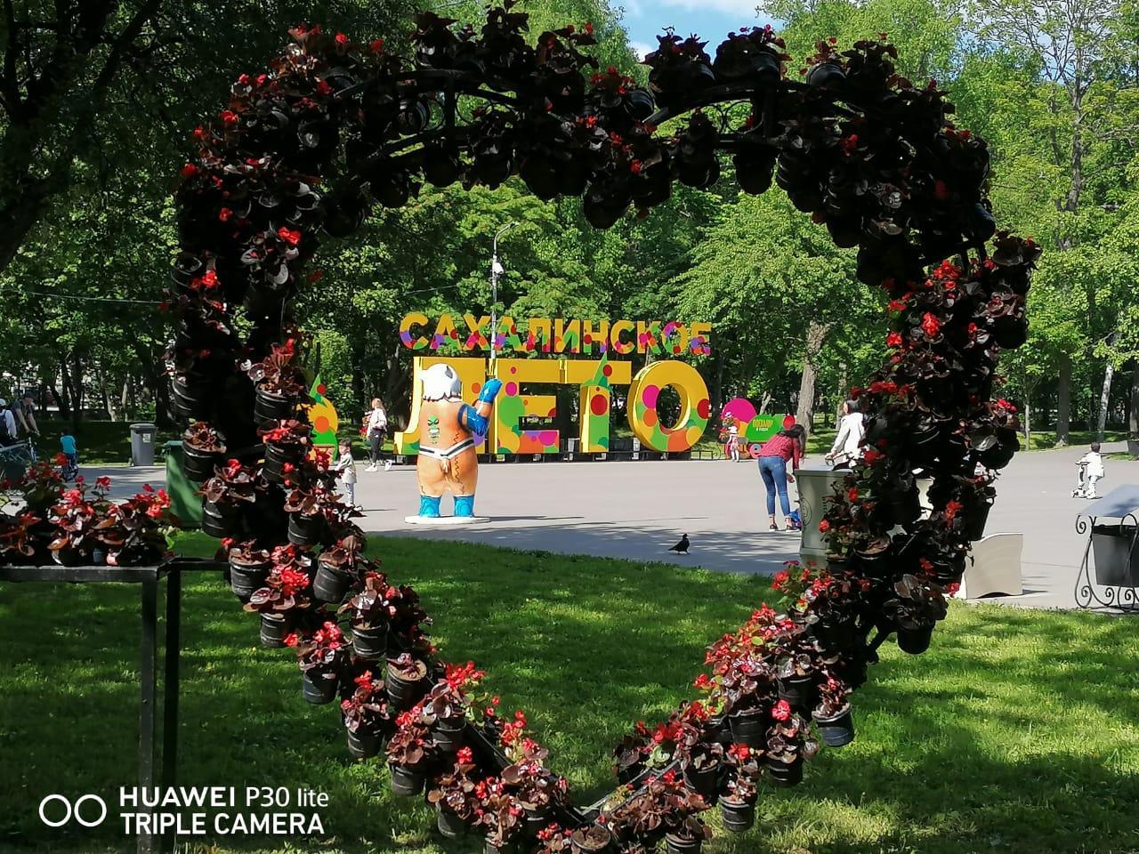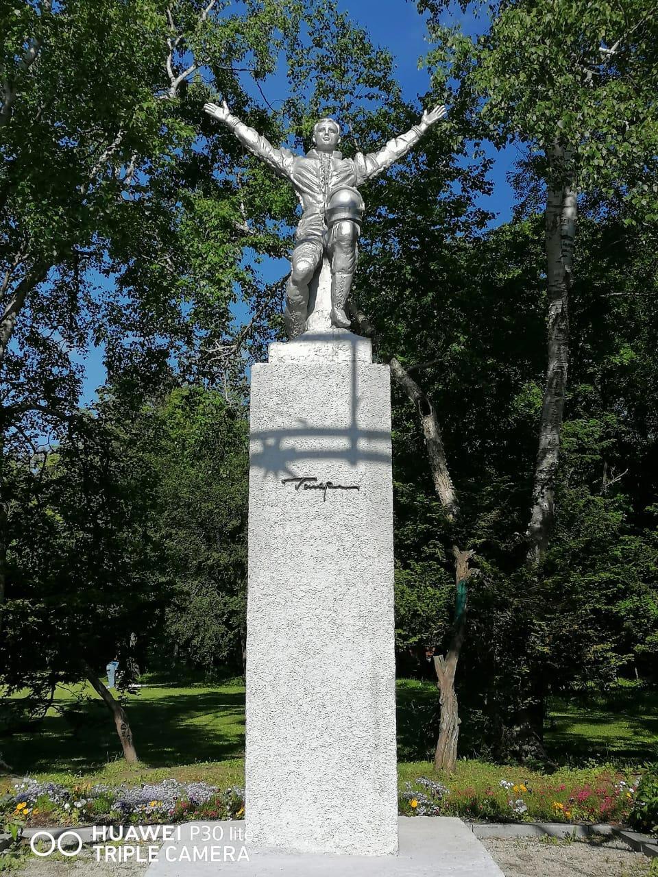 После 1968 года городской парк отдыха Южно-Сахалинска стал носить имя первого космонавта Юрия Гагарина, и конечно же у центрального входа стоит его скульптура.