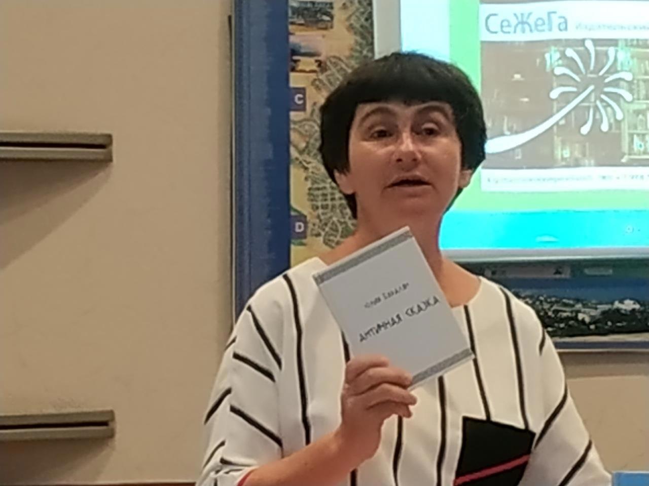 Презентацию книг литературного объединения "СКОЛ" проводит главный редактор Виктория Балашова