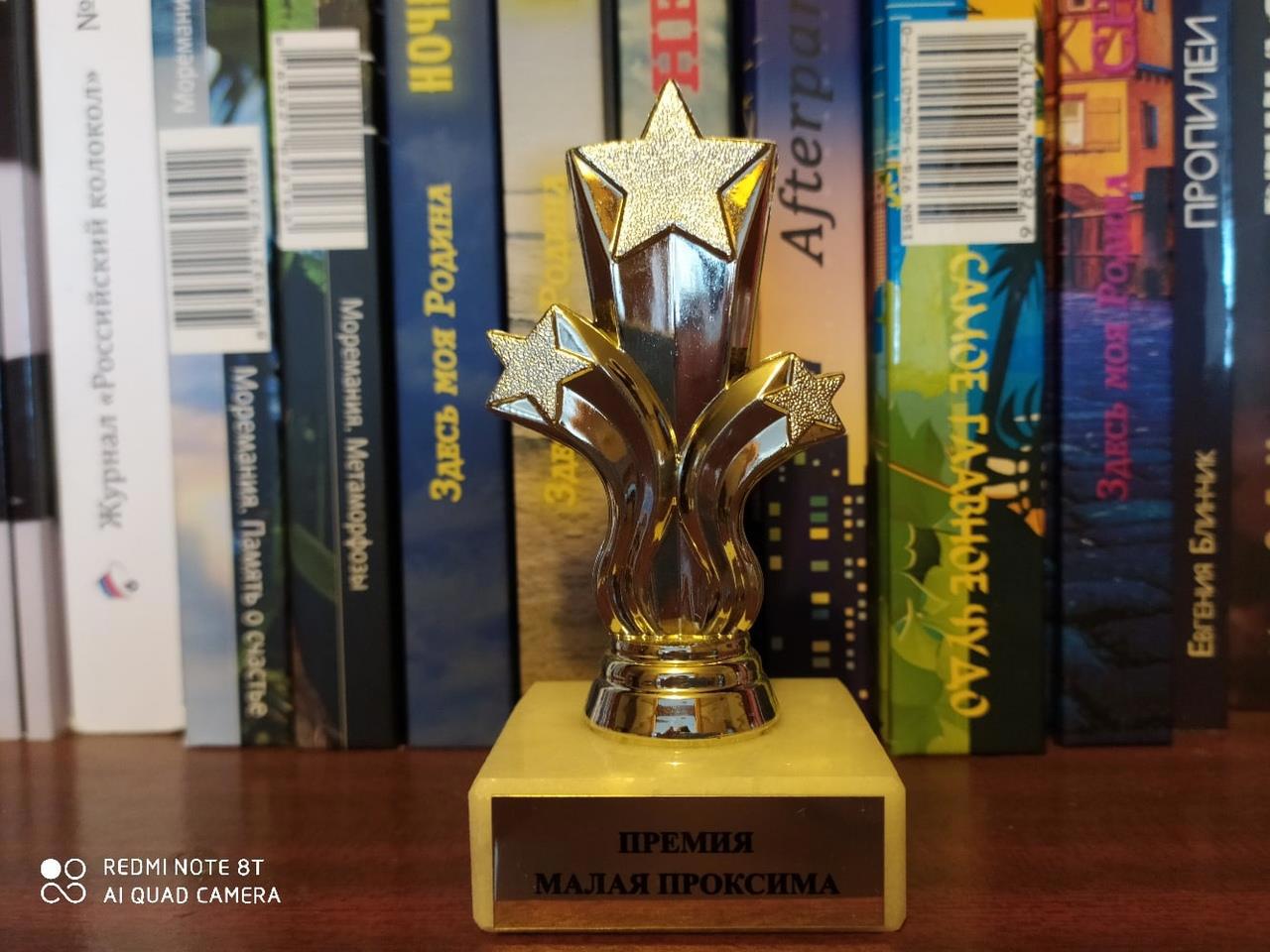 Так наше издательство "СеЖеГа", как выяснилось, в конце прошлого года было выдвинуто на премию фестиваля "Проксима Центавра", который проходил в Москве. И Виктория Балашова вручила нам приз - "Малая Проксима" за Активную издательскую и общественную деятельность.