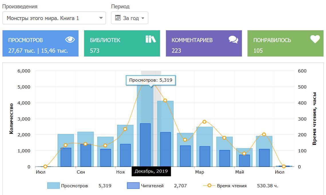 Далее нам необходимо определить полное время чтения вашей книги. Для этого открываем всю статистику за год или, если книга существует дольше, за период её существования.