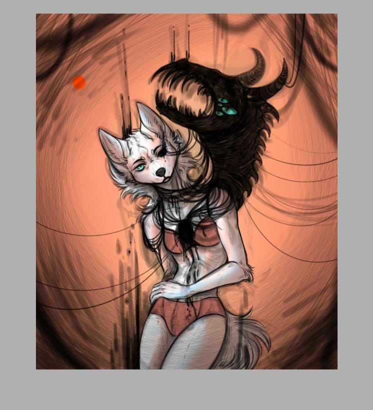 Героиня тут в зверо форме, хотя в книге описываются обычные люди, но с той разницей, что у них звериные души. И есть те люди, кто эти души может видеть. И сочетание звериной души и человеческого тела выглядит именно так, как на рисунке (mukki_en как раз по фурри спец).