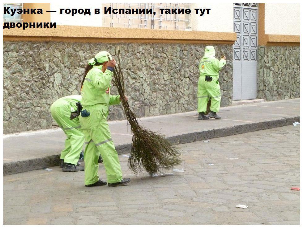 Впрочем, оставим психологию. В данном случае нужен просто текст для банального фоторепортажа об одном их захудалых районов города. И лучше всего этот район иллюстрируют дворники – без спецодежды, с нищенской зарплатой и, даже, без бесплатного молока за вредность. Вот, для наглядности, как экипированы дворники в Испании или в Германии.