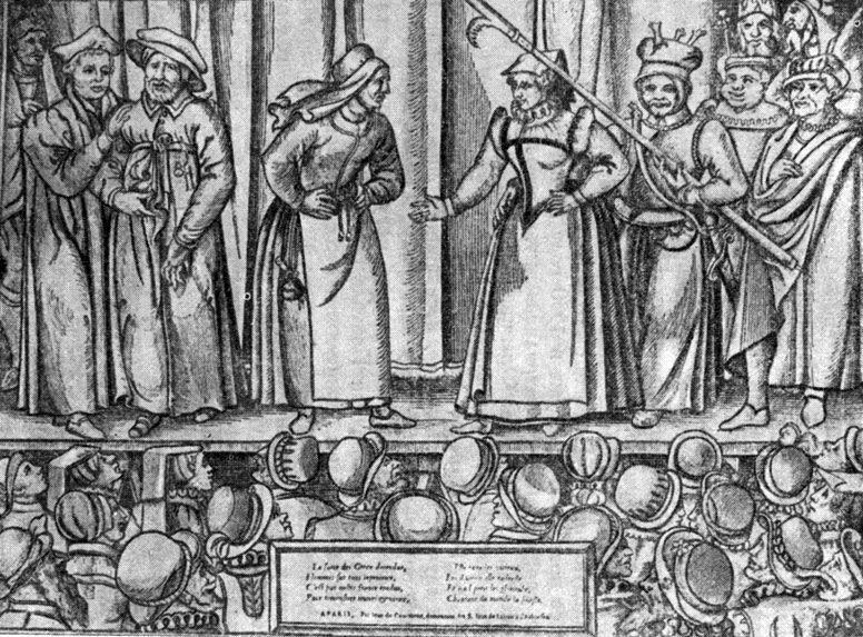 Поскольку фарс родом из мистерии, то он глубоко религиозен. Смерть, дьявол, ангел, святой — традиционные персонажи фарса. Поскольку фарс живет на площади, он низко-бытовой. Жена-изменница, лихой любовничек, муж-рогоносец, старуха-обманщица — традиционные персонажи фарса.