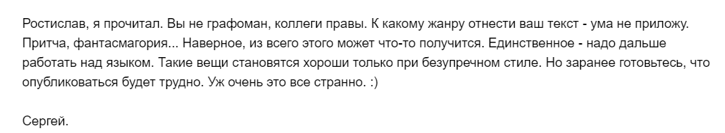 Автор: Ростислав ГельвичПриятно, что мэтр не проигнорил. Буду работать дальше.