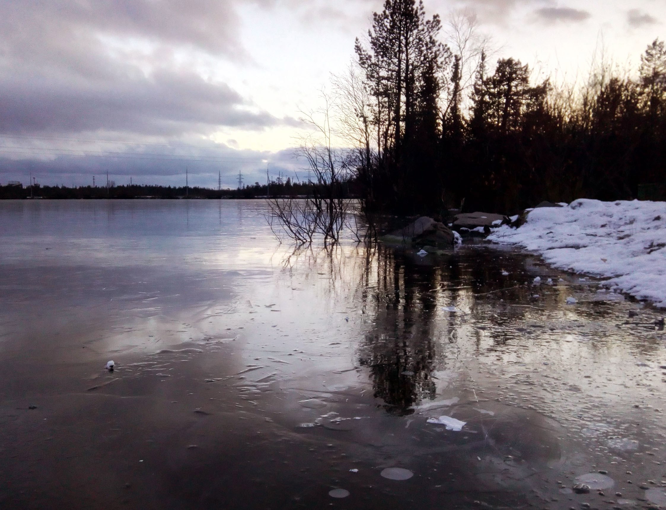 А вам вот картиночка... у нас снег лежит, и озеро замерзло. Зима пришла... ходоки где-то рядом...