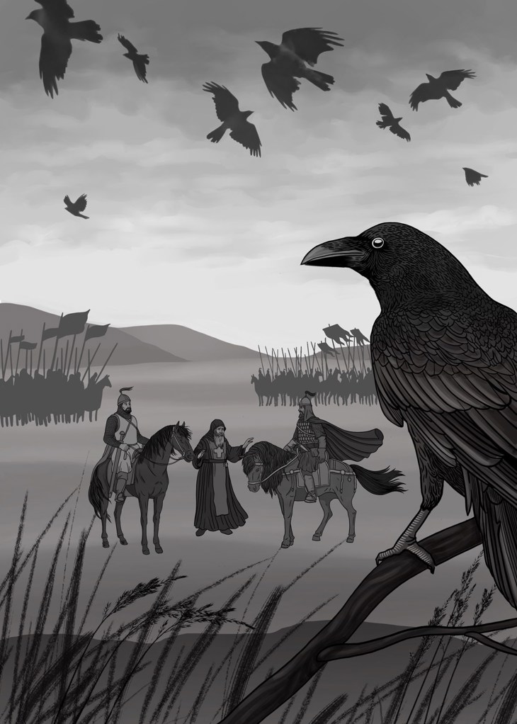 Они встретились на поле между укреплёнными лагерями – два отряда человек по десять, в схожих зимних плащах, и легат патриарха, в белом плаще с большим красным крестом. Обе группы спешились, предводители вышли вперёд. Между ними судьёй встал священник, вдруг напомнивший князю ворону, прилетевшую поживиться падалью. Даже чёрные волосы и чёрные одежды под плащом отдавали сизым. И, словно продолжая мысли, внезапно переменился ветер и принёс откуда-то запах гари.