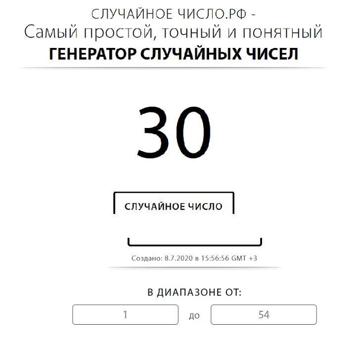 Итак, первая же попавшаяся онлайн программа - генератор случайных числе выдала такой результат.