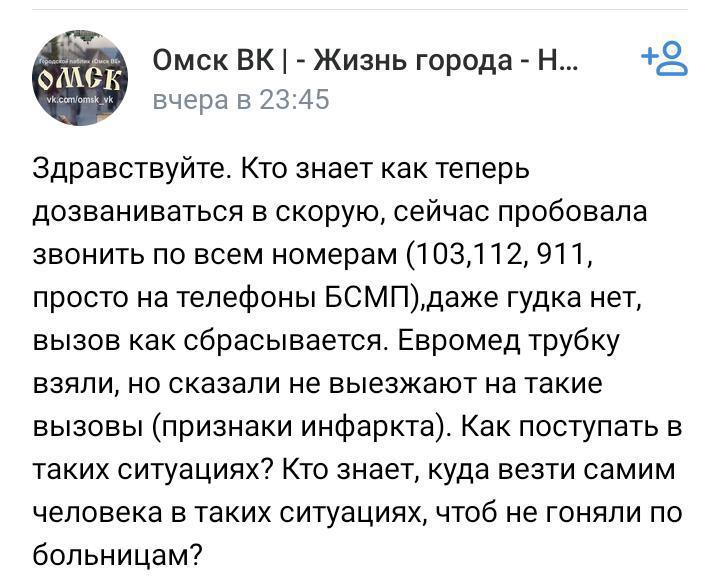 Сочувствую городу Омску. У нас иногда ехала на мой взгляд (но на умеренно срочный вызов) долго, но чтобы не дозвониться - такого вообще ни разу не припомню