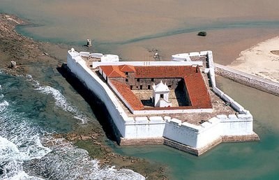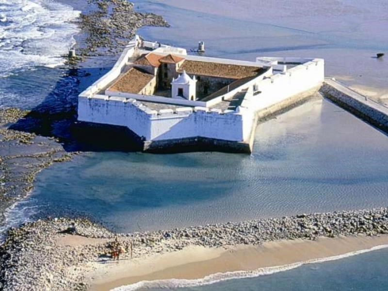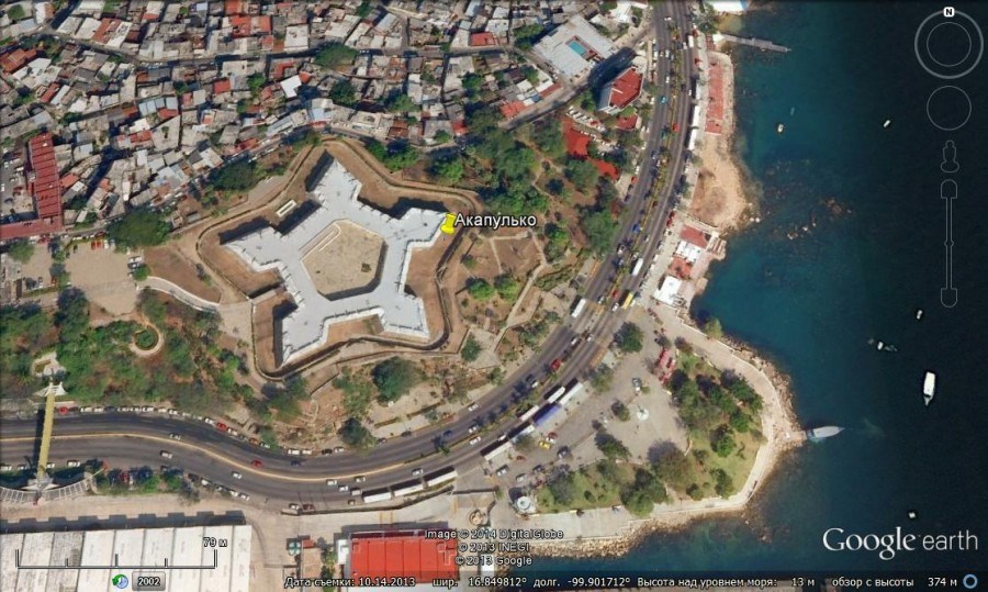 Ладно, оставим Казахстан пока. Вот забавная крепость-звезда в Бразилии под названием «форт трёх королей». Оцените. Вот кому пришла в голову мысль построить его в луже? А если приглядеться, то можно заметить, что нижняя часть стены не похожа по материалу и конструкции на верхнюю совсем. Так может нижняя часть была построена, когда лужи не было? Ладно, это я так просто сказал, хотя может и не просто…