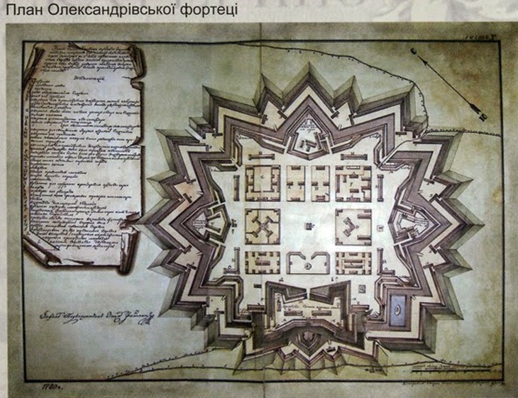 А вот ещё один интересный фактик. В Запорожье есть крепость Александровская. Вот старая карта этой фортеции. Типа «чертёж».