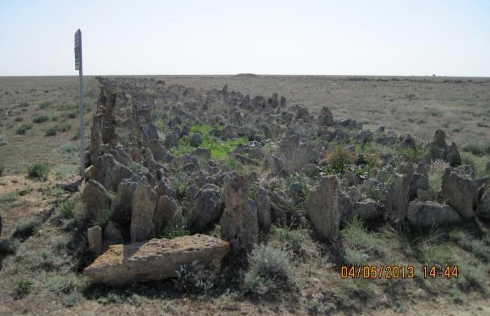 Называется это Форт Ново-Александровский и построен он в 1834 г., а в 1846 г. заброшен за ненадобностью. Для защиты от кочевников вместо него соорудили другой форт, который позже был назван форт Шевченко. Но это – детали, а вот земные фотки остатков этой самой стены-звезды. На второй фотке табличку видно...