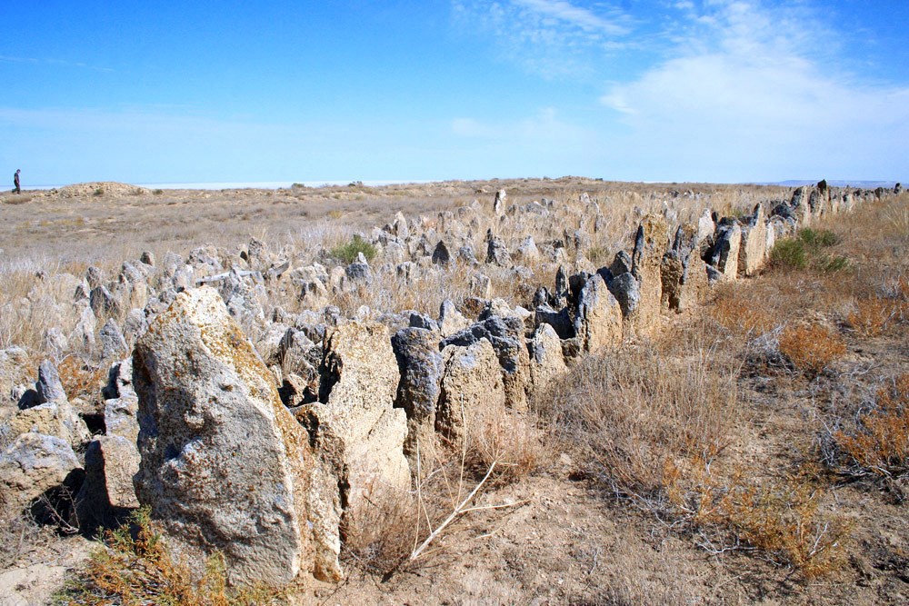 У вас тоже странное выражение лица сейчас? У меня было именно такое, наверное, когда я это увидел. Действительно это похоже на что угодно, но только не на остатки крепостной стены. Особенно это бросается в глаза в сравнении со вполне банальными развалинами каменных зданий внутри этого периметра. Это что – кирпич кончился? И на фундамент как-то не тянет. Только не говорите про дерево – в этих местах палки не найти на много-много-много сотен километров вокруг.