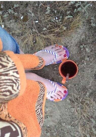 На вершине холма ветрено и дождь. Но у нас есть покрывало! Следите за цветовой гаммой, чашка с кофе обязательно должна быть одноцветственной, как и полоски на ваших тапочках.