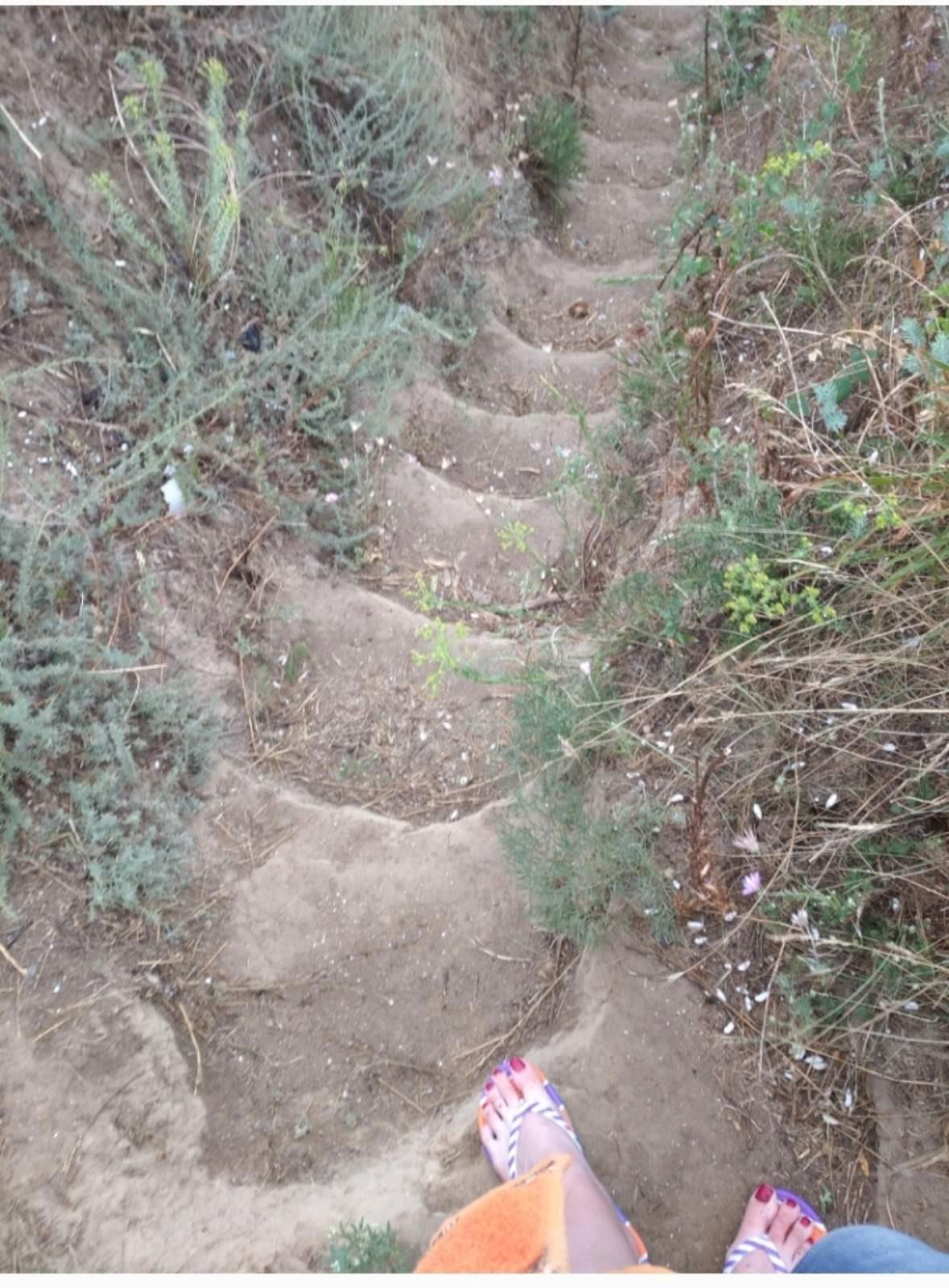 Вы хотели быть похожей на Пресвятую Деву, но как всегда похожи на себя, это так утомительно. Здесь песчаник. Вниз ведёт вырубленная в скале лестница. Карабкаясь по ней 10 раз в день вы робко надеетесь, что сбросите 5 кг, нажратых за карантин, вы очень хотите их сбросить.