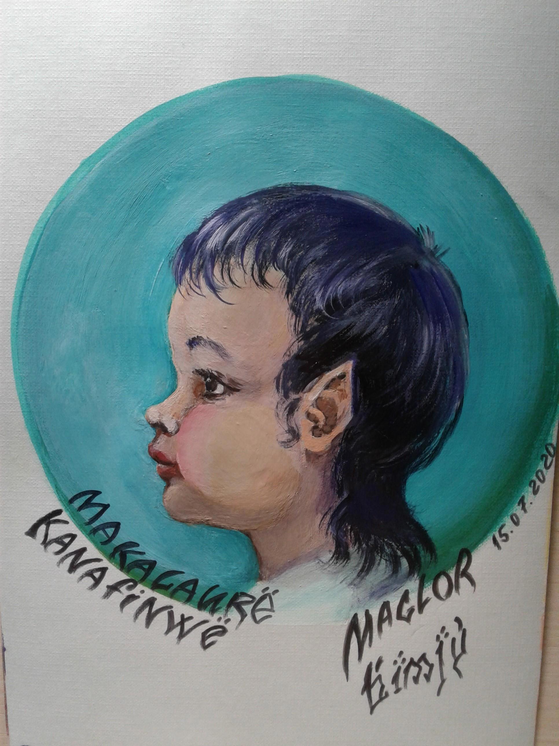 Захотел нарисовать первенца для обложки рассказа, рисовал-рисовал, отложил. Но зато за 4 дня нарисовал второго сына. Маглор в детстве. Акрил, лист А4