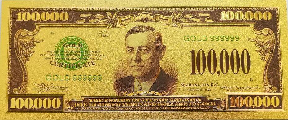 Вудро Вильсон изображён на 100 тысячной купюре США.