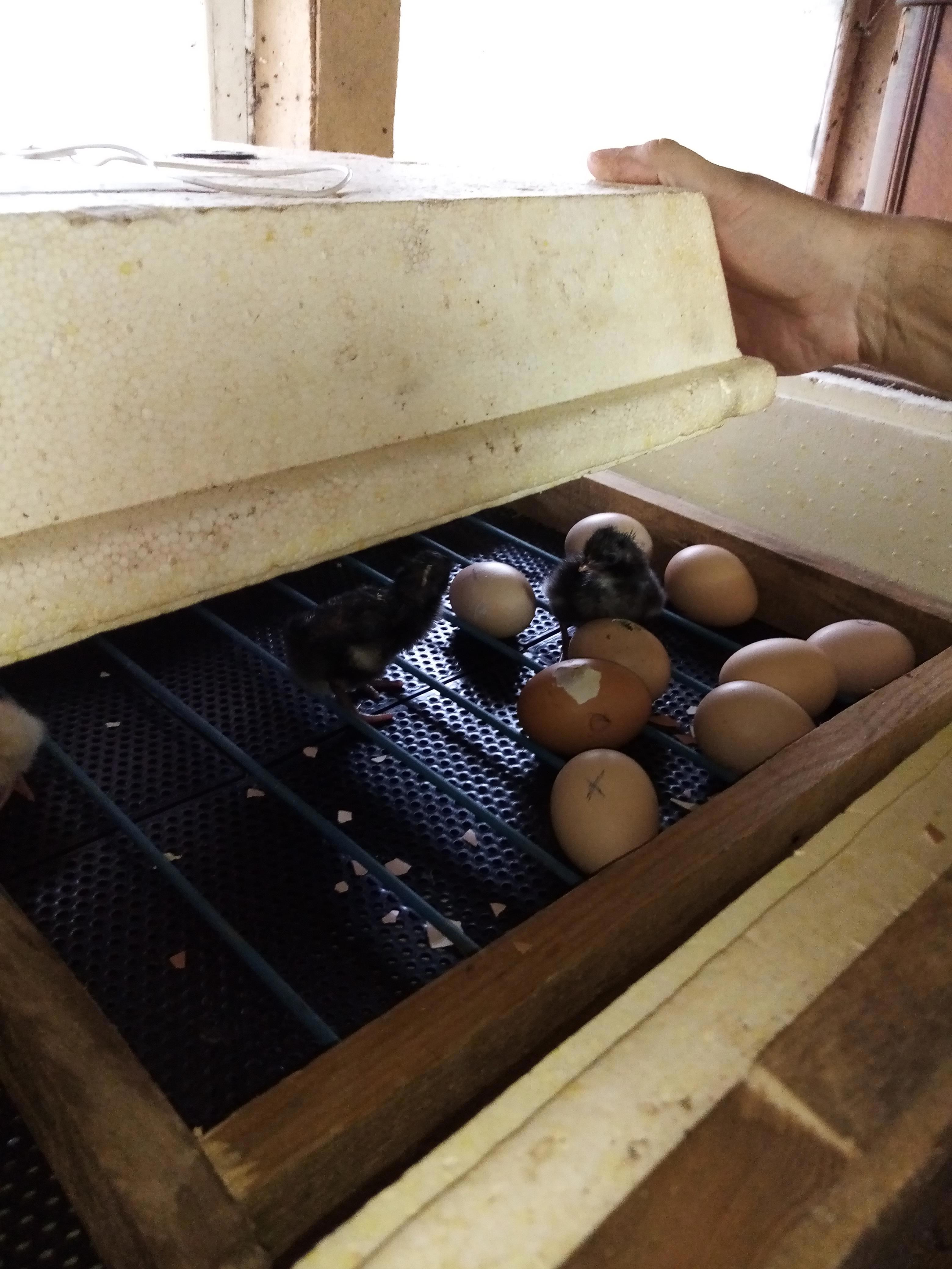 Прошел 21 день,как в инкубатор заложил куриные яйца. И сегодня стали вылупляться цыплята. Из 10 яиц скорее всего вылупится 6 цыплят. Трое уже бегают, а трое клюют скорлупу и пытаются вылезти. Всю ночь наверное будут вылазить из домиков)))
