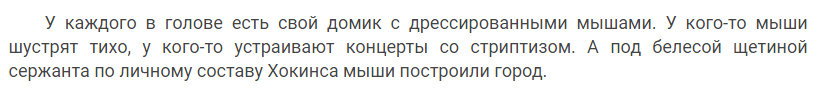 Мне вообще нравится как пишет Крис. Очень красиво и, главное, всегда со смыслом. Причем где-то может быть аллюзия, где-то ирония, а где-то просто красивый вывод. И пару цитат, чтобы не быть голословным: