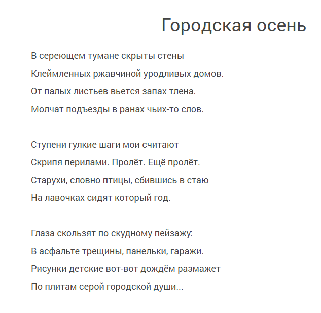 «Клеймлённых ржавчиной уродливых домов» – разрушает он сказку, созданную первой строкой.
