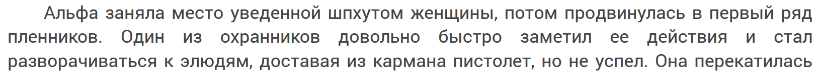 Сама по себе книга не плоха и вполне читабельна. Это скорее мои заморочки, мои знания о сходных сюжетах обесценивают ее лично для меня. Что касается ошибок в тексте, то это признак спешки, видимо автор торопилась успеть на конкурс, а на вычитку времени не осталось. Конец вполне предсказуемый: биоробот проникся самосознанием, взбунтовался и убежал. Впрочем, как и в «Универсальном солдате».