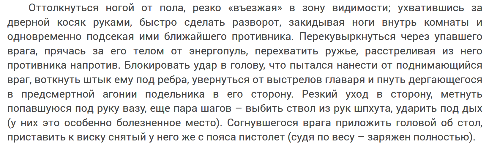 Не верю, сцена не складывается. Написать можно все - бумага стерпит, а вот в реале это проделать... Имея в руке Глок с 17-ю зарядами и противника на расстоянии вытянутой руки, можно стрелять в голову не целясь... Никакой симбионт не спасет. Да и выдавливать одной рукой глаза в такой ситуации проблематично, совмещая с борьбой за пистолет.
