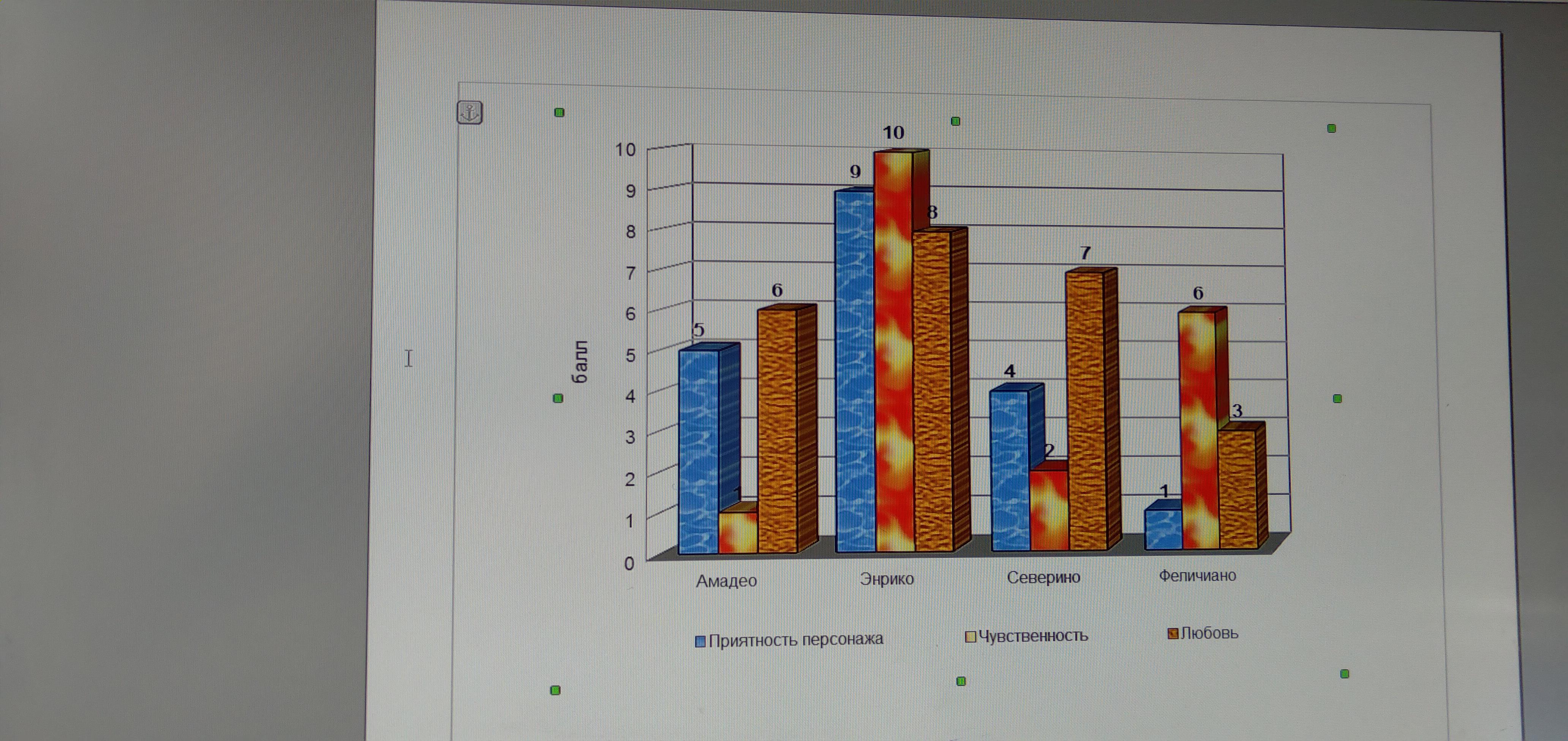Итог: чувственность — 3 балла, любовь — 9 баллов, приятность персонажа —10 баллов.