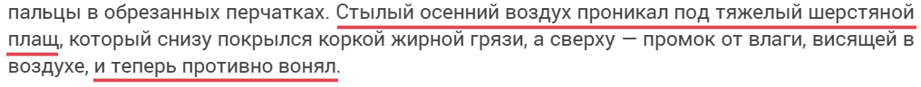 Но, если в целом, стиль неплох: он даже узнаваемый, что не о каждом писателе скажешь. Производит приятное впечатление, вкупе с общей грамотностью. Ошибки и опечатки встречаются: некоторые выбраны под спойлером, – но их не больше, чем в любом другом романе. Скорее, меньше.