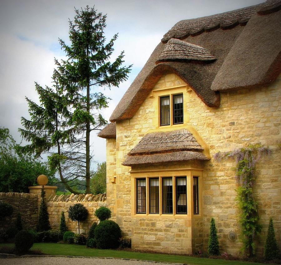 «...стены желтого кирпича были густо увиты жимолостью, пассифлорой и хмелем, под островерхой крышей лепились несколько ласточкиных гнезд...»