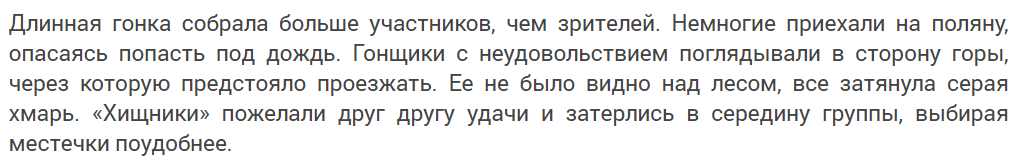 Я это к чему? К тому, что в рецензируемом романе не хватает профессионального взгляда на автоспорт – тогда совсем бы другой коленкор получился. А в отсутствие профессионального взгляда что остается? Художественность, то есть непосредственно литература. С этим у автора не все гладко, к сожалению.