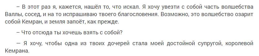 И пошли войска кемранские воевать направо-налево. Но сильно благородно, судя по первой сцене романа. Потому что молодой король пошел явно не в батюшку (в соседа или нет, история умалчивает, а потому будем считать, что в матушку). Вот только по волшебству тосковал Вальтен, даже решил жениться на одной из дочерей короля-друида соседнего государства - на Риане.