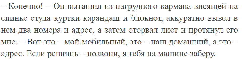 Встречается местами еще несколько моментов, где по сути своей идет простой перебор действий персонажа, типа: умылся, побрился, оделся, вышел из дома, сел в машину, поехал на работу.